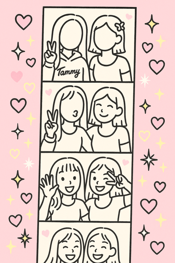 So when my mum recently found an old strip of photo booth pics I took with a friend in the middle of Tammy Girl, I was instantly transported. One minute I’m drinking tea in 2025, the next I’m 12 years old again, wearing a butterfly hair clip, pretending I’m in a music video, and choosing the “sparkle” filter before striking a totally serious pose.